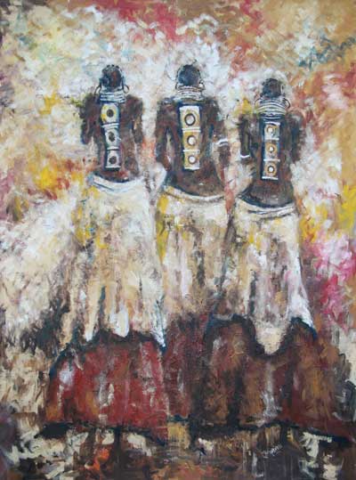 Immerse yourself in Mubiru's abstract paintings full of African energy and color. His technique of painting with multiple layers with a palette knife and a blunt brush gives his work a powerful sense of depth and movement.